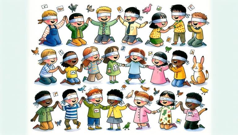 - If using blindfolds, distribute them among the participants. Instruct the children to close their eyes or put on their blindfolds when the game begins.