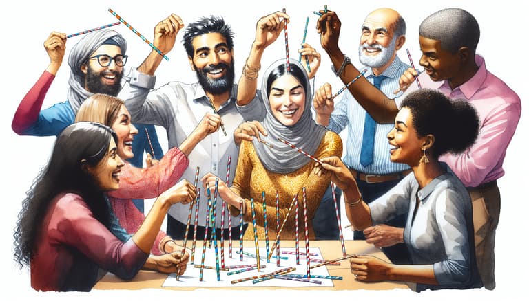 The Straws Question icebreaker game is an engaging and interactive way to help people get to know each other better. Its primary purpose is to encourage communication and foster a sense of community by asking questions that invite players to share personal experiences, opinions, or creative thoughts. This activity involves using specially marked straws, which are drawn from a cup after a question has been presented to the group. The individuals who draw the marked straws are then prompted to answer the question, allowing for a more dynamic and diverse range of responses. Overall, the Straws Question game is an effective icebreaker that requires minimal materials and can be adapted to various age groups and gathering sizes.