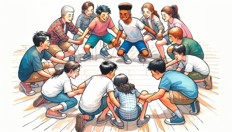 The Gladiators icebreaker game is a fun and engaging activity that is great for medium to large groups of kids and teens. Its main purpose is to help remove awkwardness between players and increase interactivity, making it an ideal choice for parties or gatherings. The game involves pairing up players and challenging them to touch their partner’s knee whenever it is not being protected by their hand. Each round lasts for 20-30 seconds, and the player with the most scores at the end wins. No special materials are needed to play, making it a convenient and accessible game for any occasion. By encouraging players to engage with each other in a lively and active way, The Gladiators icebreaker is sure to make any party more fun and memorable.