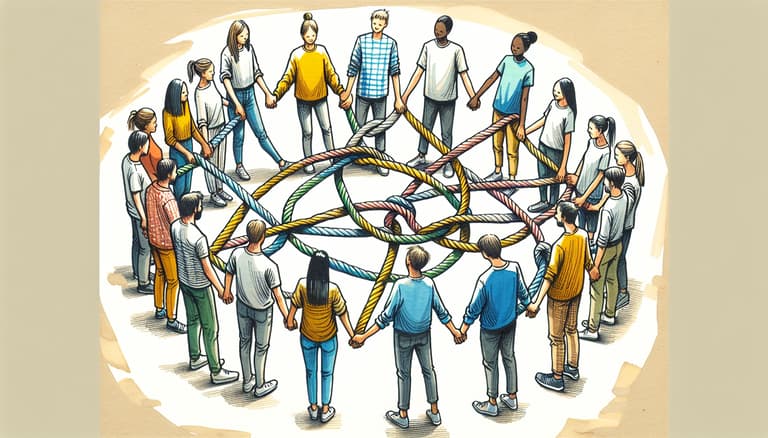 • Tip: Encourage adaptability . Remind participants that there is no one “right” way to untangle the human knot and emphasize the importance of creativity and flexibility in problem-solving. This fosters an inclusive atmosphere where everyone’s ideas are valued, regardless of their abilities or communication style.